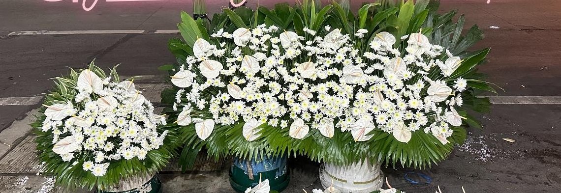 Casket & flower garden set up #1